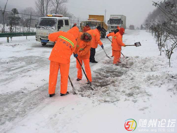 隨州論壇訊 1月4日,廣水市公路部門組織員工上路掃雪撒鹽保暢通。