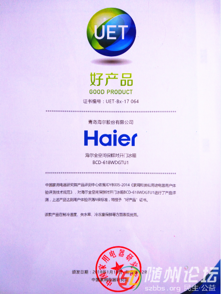 1月18日,2017年中國家電行業(yè)年度峰會暨好產(chǎn)品發(fā)布盛典在北京舉行。海爾全空間保鮮對開門冰箱BCD-618WDGTU1在經(jīng)過了中國家用電器研究院產(chǎn)品評測中心評測后,成功獲選“好產(chǎn)品”。據(jù)悉,此款產(chǎn)品不僅憑借全空間保鮮技 ...