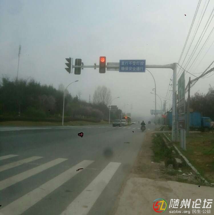路口有紅綠燈,還再加一塊牌子輔助提示,隨州交警的一大特色。 |