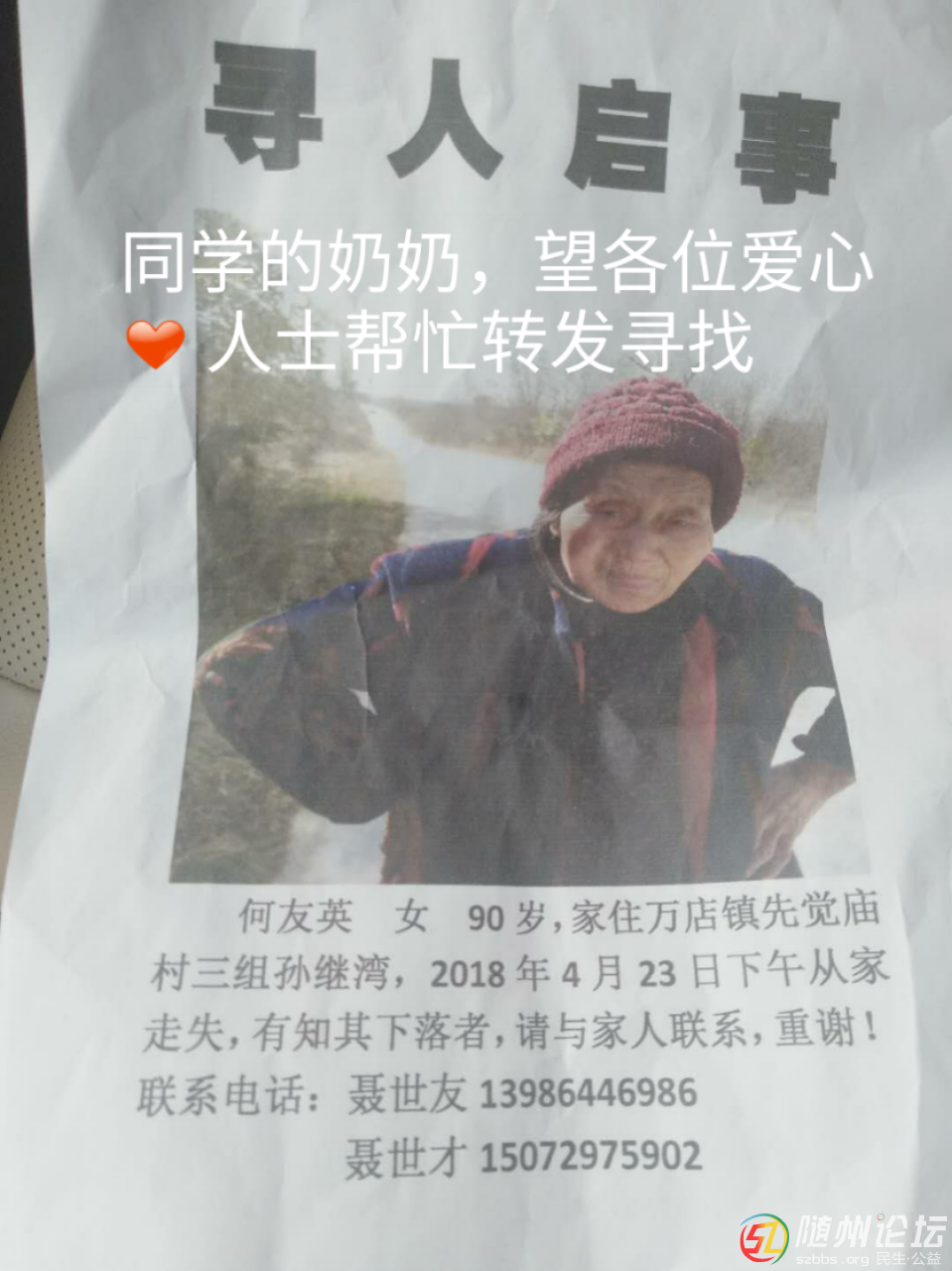 我同學(xué)的奶奶,昨天出走丟失,望各位愛心人士幫忙轉(zhuǎn)發(fā)尋找,謝謝