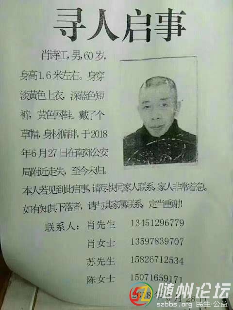 我家的叔叔在南郊轉(zhuǎn)盤附近走丟了,請大家?guī)兔φ艺?!謝謝大家