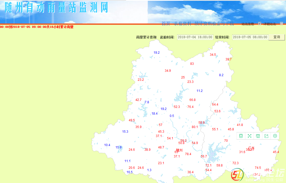 隨州昨夜今晨降雨大小、多少嚴重不平衡。一南一北的大洪山和草店鎮(zhèn)降雨量不到10mm,隨州中部地區(qū)出現(xiàn)了暴雨天氣,大暴雨中心集中在廣水市。(紅色的為降雨量大于或等于20mm的地點)。 雨量等級? ??小雨:12小 ...