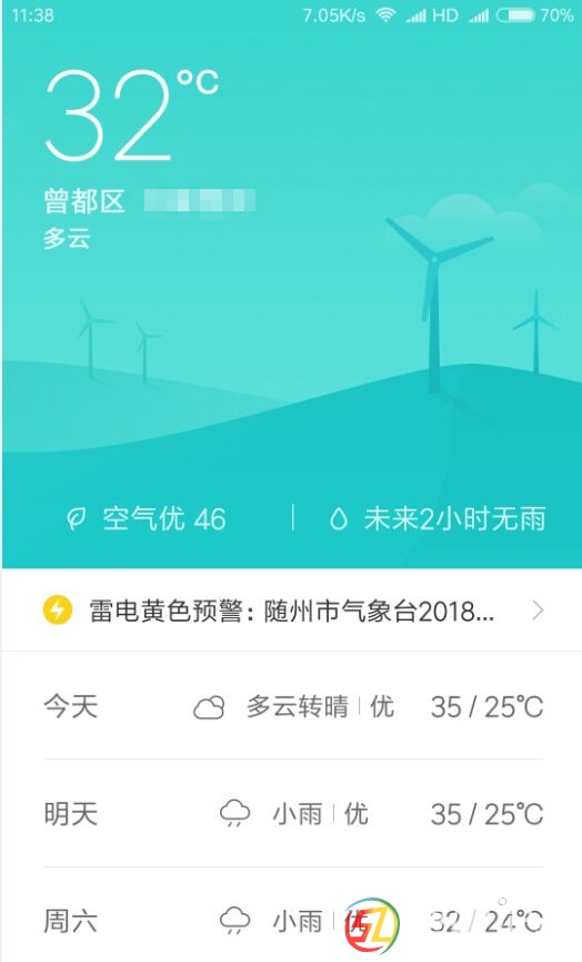 剛剛收到的雷電黃色預(yù)警