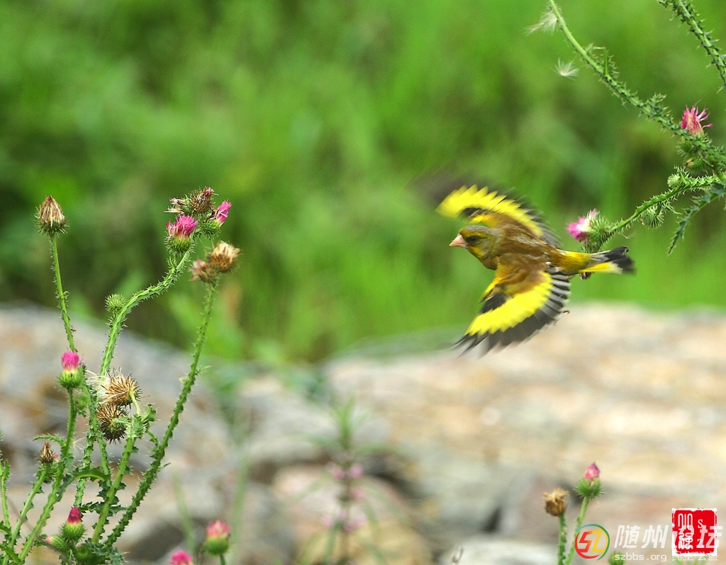 拍的漂亮。有水平。找了一下度娘,是金絲雀鳥,不知道我們大隨有沒有野生的。 |