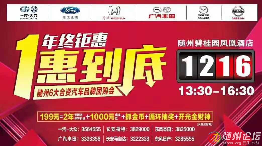 一年又要過去了選中你要的車了嗎?是不是在車海里找了又找還沒有找到你要的實惠看過來!瞧過來啦! 隨州六大暢銷合資汽車品牌團購會 年終盛惠 一惠到底史無前例!?。【驮?2月16日!12月16日!活動時間:2018年12月1 ...
