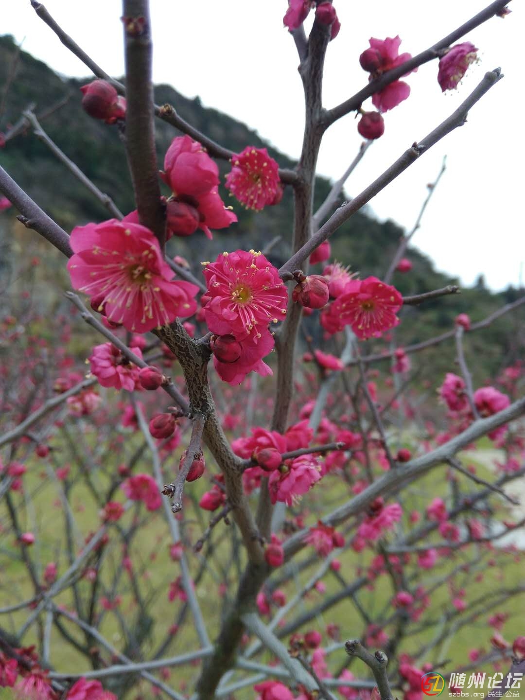 今天是春節(jié)期間最冷的一天,梅園里依然有很多人來賞梅花
