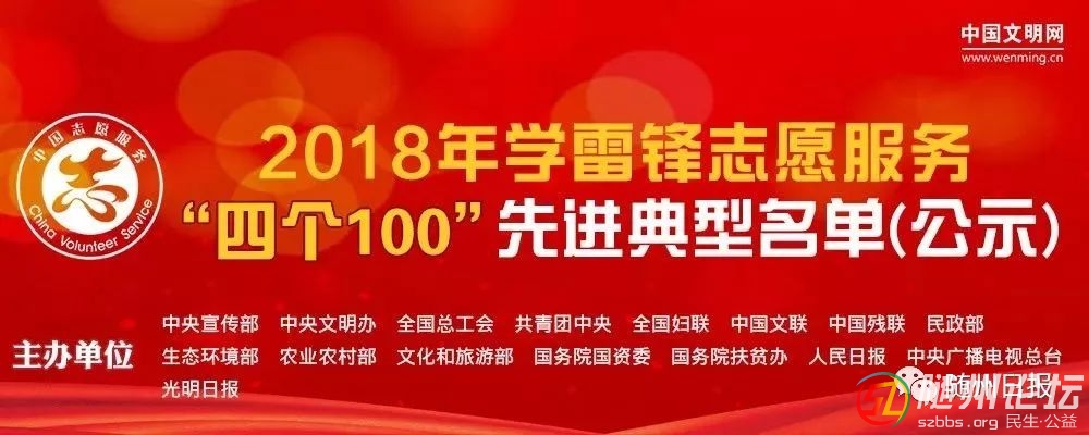 近日,由中央宣傳部、中央文明辦、全國總工會、共青團中央、全國婦聯(lián)等16個單位,聯(lián)合評選的2018年學(xué)雷鋒志愿服務(wù)“四個100”(最美志愿者、最佳志愿服務(wù)組織、最佳志愿服務(wù)項目、最美志愿服務(wù)社區(qū))先進典型名單公 ...