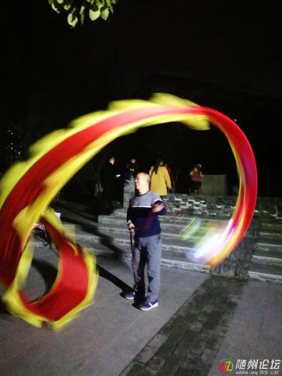 剛才路過神農(nóng)公園,見一老漢舞“布龍”,乘他休息間隙,詢問得知,老漢姓謝,“布龍”有十米長。