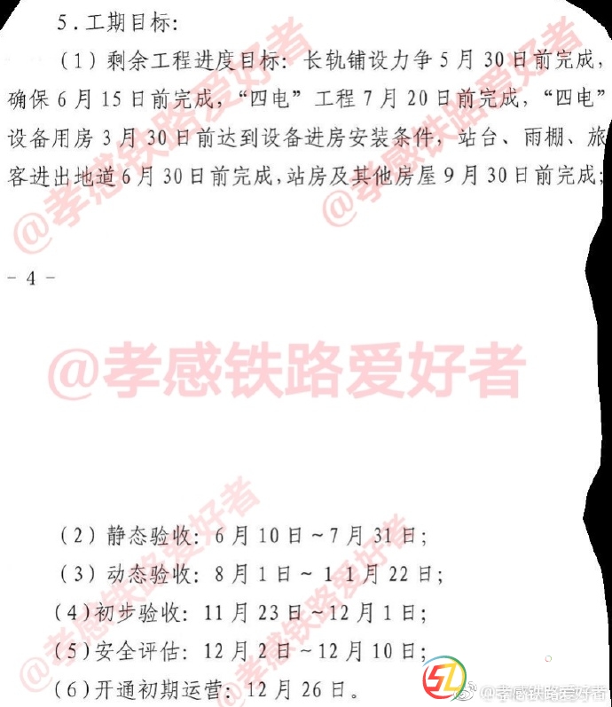 正文摘要:從一份得到的文件了解到漢十高鐵剩余的各項(xiàng) 工程完工時(shí)間表已經(jīng)確定! 2019.12.26漢十高鐵開通運(yùn)營(yíng)! 6.15完成全線鋪軌 6.30完成站臺(tái) 雨棚 地道 7.20完成四電 9.30完成站房 6.1.-12.10 驗(yàn)收 評(píng)估 12.26 開通初期運(yùn)營(yíng) ... |