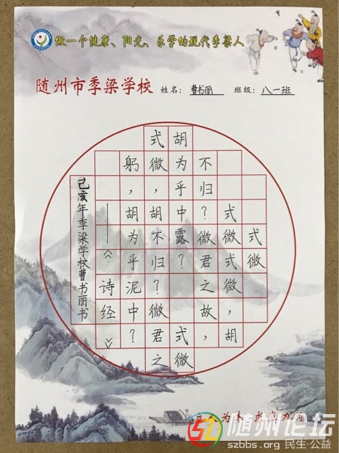 本帖最后由 古道西風(fēng) 于 2019-3-5 11:24 編輯 隨州市季梁學(xué)校八(1)班曹書麗