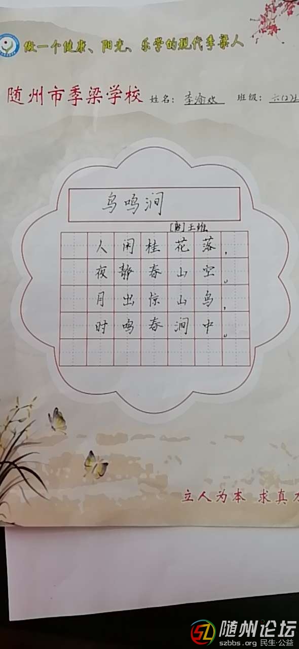本帖最后由 保質(zhì)期 于 2019-3-12 10:23 編輯 隨州市季梁學(xué)校六(2)班李渝歡書法作品