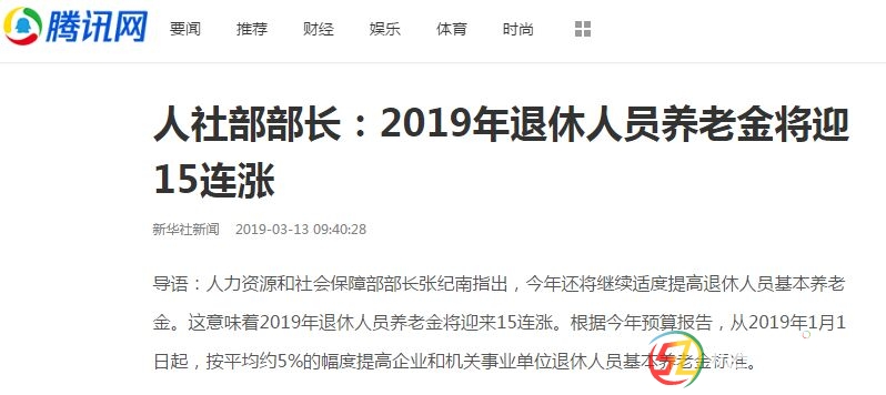 正文摘要:新華社北京3月13日電(記者班娟娟王文博)《經(jīng)濟(jì)參考報(bào)》3月13日刊發(fā)題為《2019年退休人員養(yǎng)老金將迎15連漲》的報(bào)道。文章稱,3月12日,在兩會(huì)“部長通道”上,人力資源和社會(huì)保障部部 ... |