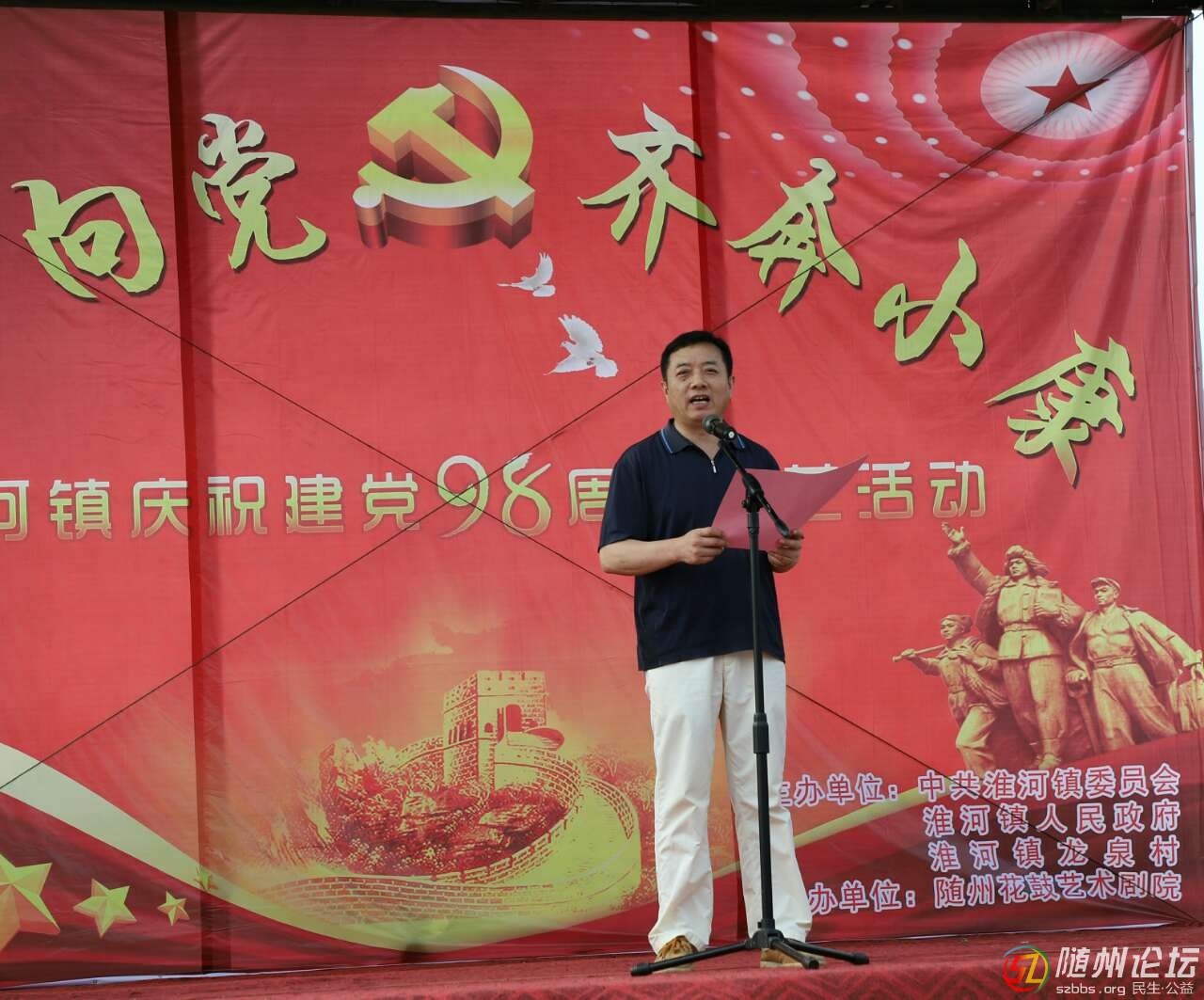 為慶祝建黨98周年,充分展示新時(shí)期扶貧工作建設(shè)成效,促進(jìn)社會(huì)主義精神文明建設(shè),豐富人民群眾的文化生活,6月27日上午,由中共淮河鎮(zhèn)委員會(huì)、淮河鎮(zhèn)人民政府、淮河鎮(zhèn)龍泉村舉辦,隨州花鼓藝術(shù)劇院承辦的以“紅心向 ...