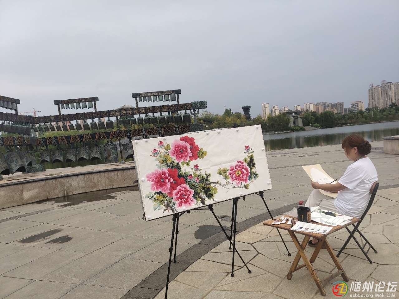 隨州日報訊(全媒記者陳巧玲)8月28日,來自十堰市的“網(wǎng)紅”畫師曹桂英走進隨州,在隨州文化公園編鐘文化廣場揮毫潑墨,以中國畫的表現(xiàn)形式,現(xiàn)場描繪曾侯乙編鐘。她還通過多個視頻平臺同步直播,與網(wǎng)友實時互動, ...