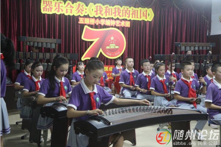 隨州論壇訊 通訊員薛峻峰、蘇明報道:“我和我的祖國,一刻也不能分割,無論我走到哪里,都流出一首贊歌……”19日下午,在激情昂揚的樂曲聲中,曾都區(qū)北郊五眼橋小學慶祝新中國成立7 ...
