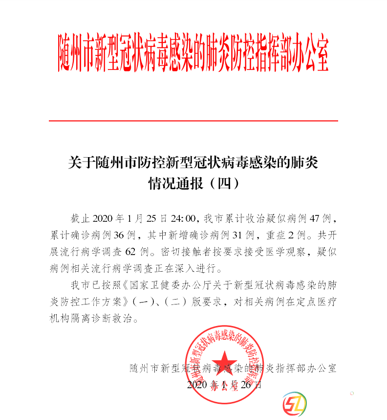 關于隨州市防控新型冠狀病毒感染的肺炎情況通報(四)5 [6 H: R5 k! m& C" ^ # P5 a% C$ Z4 I, |0 p8 O9 u: h