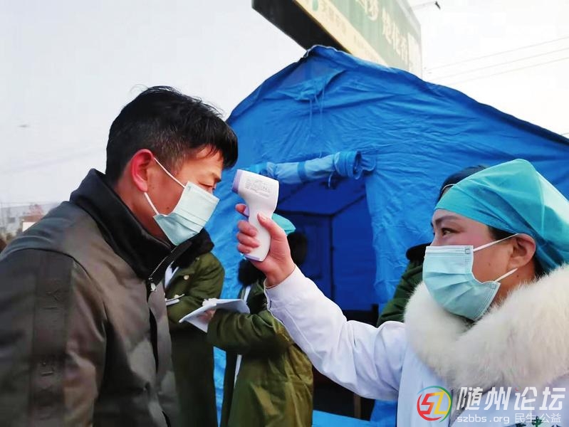 為切斷病毒傳播途徑,連日來,隨縣對縣城城區(qū)道路實行管控,設(shè)立檢測卡口,為過往車輛及人員實施疫情排查,逐人逐車登記,不漏一車一人。圖為隨縣醫(yī)務(wù)工作者為過住行人查驗體溫。 (隨州日報通訊員韓鐵流攝 ...