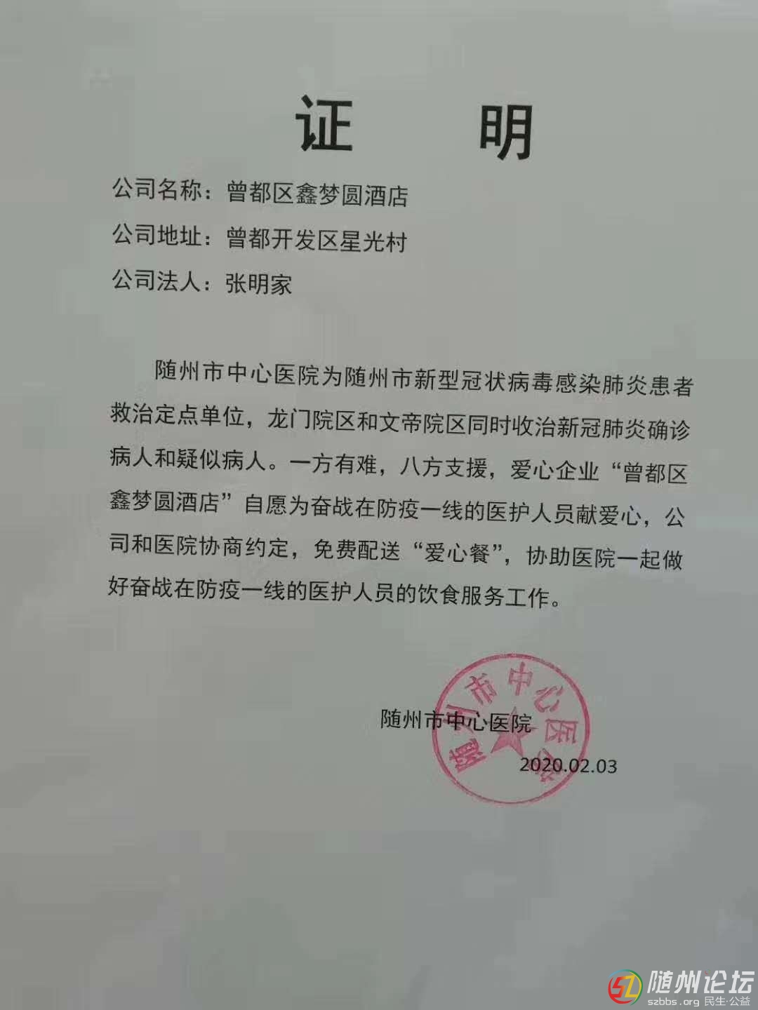 正文摘要:本帖最后由 王盡歡 于 2020-2-11 15:38 編輯 每天300份盒飯,“鑫夢圓”酒店為疫情防控一線醫(yī)務人員獻愛心 隨州論壇訊(通訊員葉忠江)因“新冠”疫情影響,春節(jié)期間,各餐飲行業(yè)紛紛閉門謝客,但位于曾都區(qū)北郊 ... |