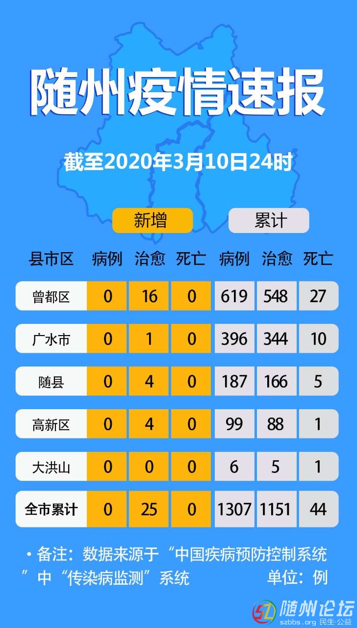 隨州疫情速報(截至2020年3月10日24時) - c) H @) m2 v 3 e& [) Q5 K: ?