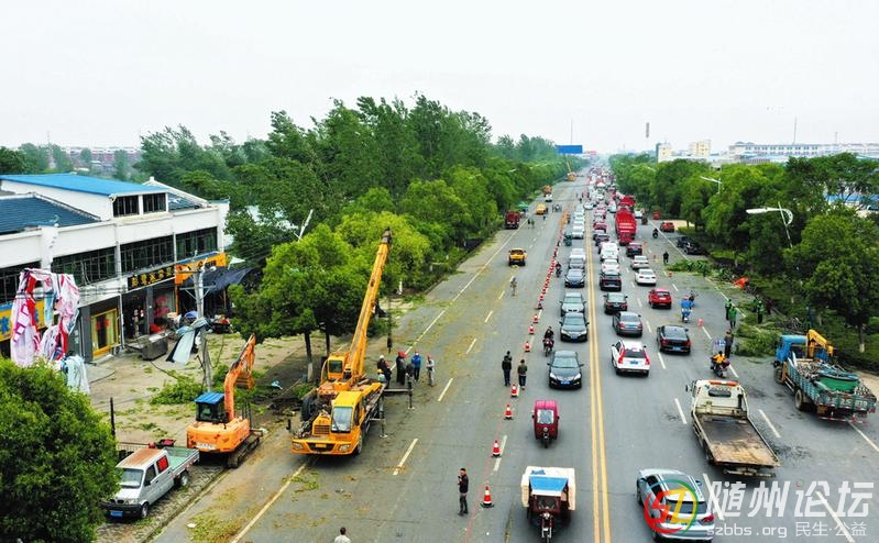 5月4日晚,我市局部地區(qū)遭遇冰雹、雷電、大風(fēng)強(qiáng)對(duì)流天氣,部分房屋、樹木、電線受損。圖為5月5日上午,供電、城管等有關(guān)部門在曾都經(jīng)濟(jì)開發(fā)區(qū)兩水溝社區(qū)搶修線路,清理路障。 (隨州日?qǐng)?bào)全媒記者徐斌攝) ...