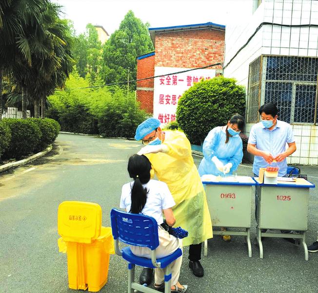 近日,隨縣安居鎮(zhèn)衛(wèi)生院的醫(yī)務(wù)人員對(duì)安居中心學(xué)校初二復(fù)學(xué)教職工開展新冠肺炎核酸檢測(cè),為復(fù)學(xué)復(fù)課做準(zhǔn)備。據(jù)了解,檢測(cè)結(jié)果將作為能否返校的重要依據(jù)。(隨州日?qǐng)?bào)通訊員鄒薇張漢西攝) ...