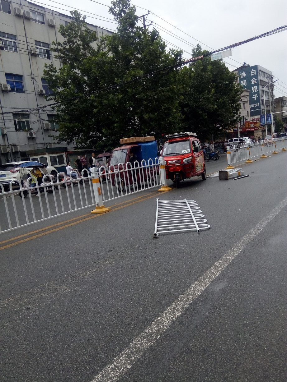 把護(hù)欄都撞飛了,跑的是有多快??? |
