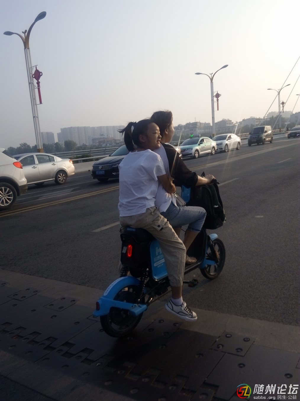 9.11早晨我過一橋的時候拍的。這對母女真是幸福啊,迎著朝霞。 這種新式的電動車投放市場快一年了。 松果、哈羅都還混的不錯。赤兔有點慘。 ...