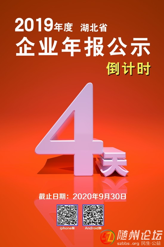 2019年度企業(yè)年報(bào)即將結(jié)束,請(qǐng)未年報(bào)的企業(yè)迅速填報(bào),否則將被列入黑名單。填報(bào)網(wǎng)址:國(guó)家企業(yè)信用信息公示系統(tǒng)(湖北) 隨州市市場(chǎng)監(jiān)督管理局宣 ...