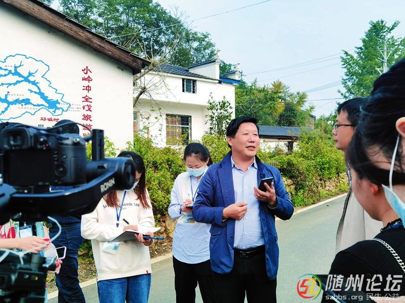 融媒體采訪團(tuán)記者在曾都區(qū)洛陽鎮(zhèn)小嶺沖村采訪該村黨支部書記甘宏偉。 (隨州日報全媒記者徐斌攝)
