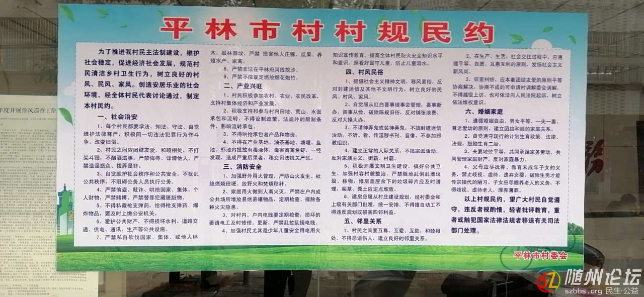 正文摘要:廣水市長(zhǎng)嶺鎮(zhèn)平林市村為了推進(jìn)本村民主法制建設(shè),維護(hù)社會(huì)穩(wěn)定,促進(jìn)經(jīng)濟(jì)社會(huì)發(fā)展,規(guī)范村民清潔鄉(xiāng)村衛(wèi)生行為,樹(shù)立良好的村風(fēng),民風(fēng),家風(fēng),創(chuàng)造安居樂(lè)業(yè)的社會(huì)環(huán)境。近日,平林市村經(jīng)全體村民代表討論通過(guò),制定本 ... |