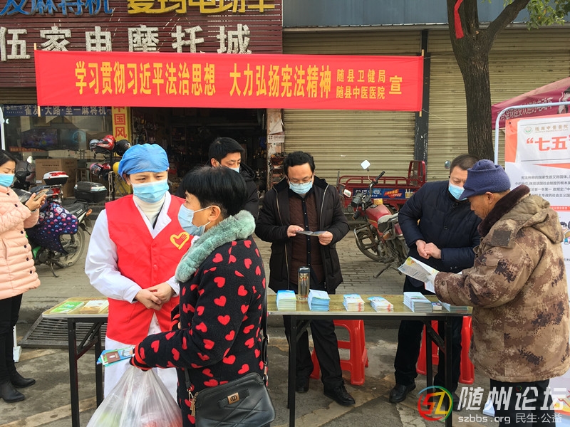 隨縣中醫(yī)醫(yī)院宣傳弘揚(yáng)憲法精神走上街頭12月4日是國際憲法日,隨縣衛(wèi)建局聯(lián)合縣中醫(yī)醫(yī)院組織人員在厲山鎮(zhèn)人流密集街頭,懸掛“學(xué)習(xí)貫徹習(xí)近平法制思想 大力弘揚(yáng)憲法精神”主題橫幅,用一幅幅宣傳展板、一張張宣傳折頁 ...