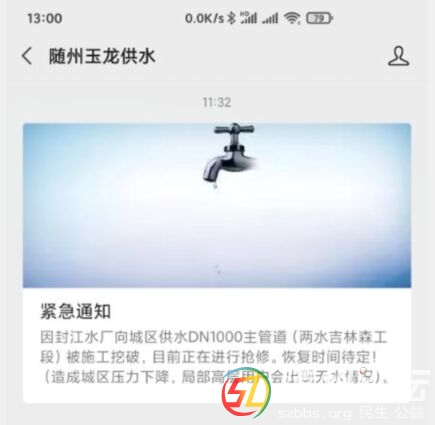記得幾天前曾經(jīng)有過因挖破水管造成停水的事故,今天正午時(shí)水管又停水了,隨城老百姓不堪其擾哇!