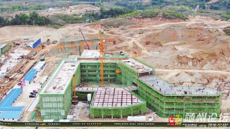 編鐘學校初中部教學樓主體施工緊鑼密鼓,預(yù)計4月底封頂。圖為4月6日施工場面。(隨州日報全媒記者徐斌攝)