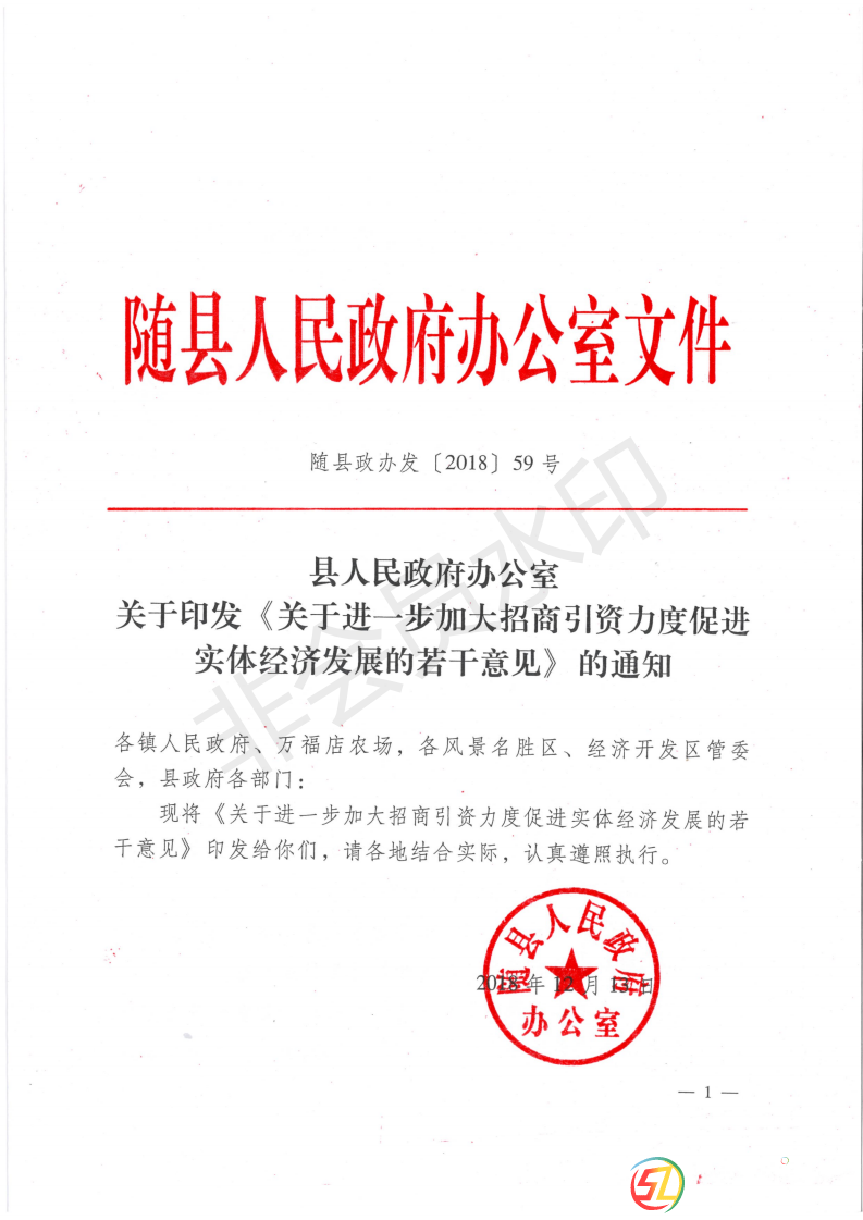 《縣人民政府辦公室關(guān)于印發(fā)關(guān)于進(jìn)一步加大招商引資力度促進(jìn)實(shí)體經(jīng)濟(jì)發(fā)展的若干意見的通知》隨縣政辦發(fā)...