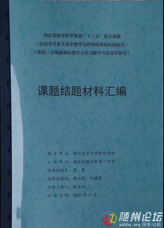 本帖最后由 云起風生 于 2021-6-4 20:52 編輯 今年4月,湖北省教育科學規(guī)劃重大課題《新高考背景下高中教學與管理改革實踐研究》(課題批準文號2017ZDB10)順利結題,隨州一中承擔的《新課標研究》 ...