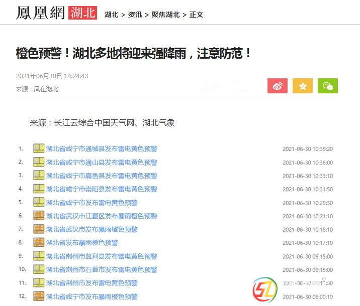 湖北省發(fā)布暴雨橙色預(yù)警 武漢中心氣象臺2021年06月30日10時16分發(fā)布暴雨橙色預(yù)警信號:預(yù)計未來3小時,武漢、江夏局部有50毫米以上降水,伴有雷電,陣風(fēng)7-9級,請注意防范。 ...