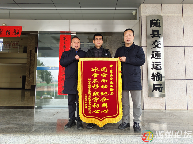 隨縣:錦旗飄揚(yáng)頌交通,除雪保暢顯擔(dān)當(dāng) 隨州論壇訊(通訊員:黃璐)近日,隨縣交通運(yùn)輸局收到了一份特殊禮物——一面印有“聞雪而動(dòng) 地企同心 冰雪不移 踐守初心”的鮮紅錦旗。這面錦旗由湖北交投隨岳高速公路運(yùn)營(yíng) ...