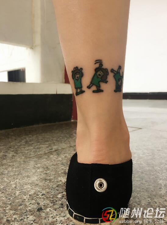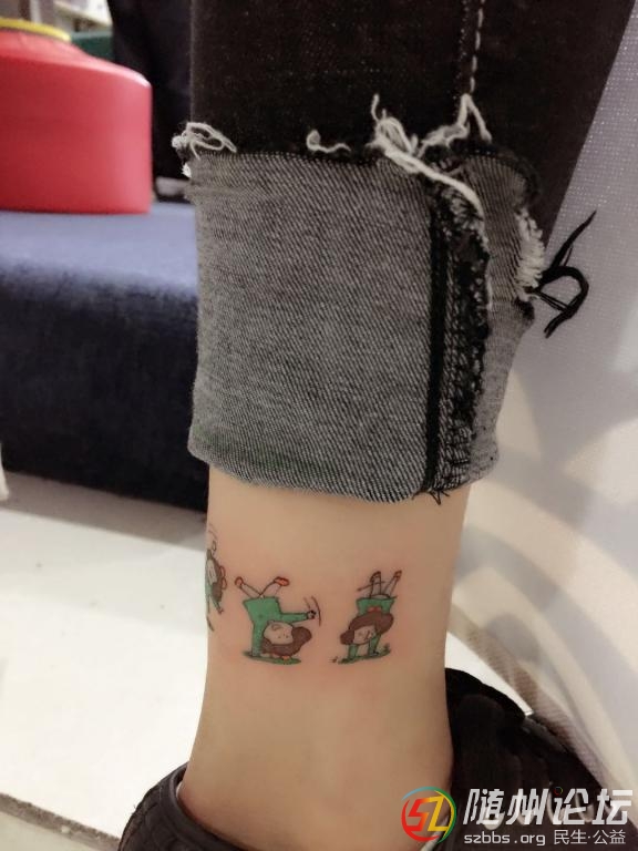 在一個風(fēng)和日麗的日子(我專門挑的,怕陰天紋身不利于傷口恢復(fù),哈哈哈),寶寶穿著長牛仔褲(紋身的位置選的是腳踝,穿褲子不容易走光)去了紋身店,拿著我選了好久的圖案(是一個小女孩打翻叉的動圖——四個分解動作,我簡直愛得不行),去找紋身師,他問了我一個難以啟齒的問題——大姨媽造訪與否,我生無可戀的回答他:嗯,在呢!