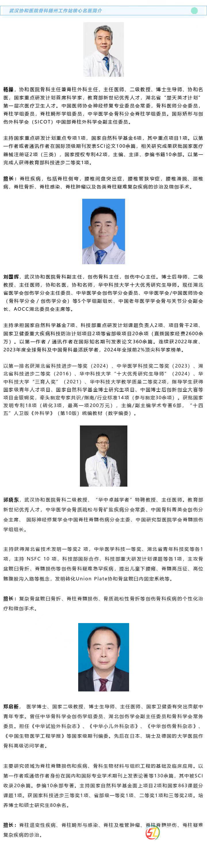 武漢協(xié)和醫(yī)院骨科隨州工作站以守護人民群眾骨骼健康為己任,致力成為隨州地區(qū)骨科領域的醫(yī)療高地和百姓信賴的健康港灣。