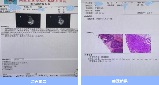 63歲的楊先生來到市中心醫(yī)院超聲影像科做檢查,發(fā)現(xiàn)肝臟里長(zhǎng)了好幾個(gè)東西,為了確定這些東西是良性的還是惡性的,腫瘤科醫(yī)生立即聯(lián)系超聲影像科,超聲醫(yī)生張洪瑋和周秀就像一位精準(zhǔn)的“偵察兵”,在超聲的實(shí)時(shí)監(jiān)控下,用一根穿刺針準(zhǔn)確地從楊先生腹部的腫塊中取出了三條組織。術(shù)后楊先生情況良好,沒有出血,取出的組織送到病理科化驗(yàn)后,病理顯示為肝細(xì)胞癌。這個(gè)化驗(yàn)結(jié)果,成為了臨床醫(yī)生決定下一步如何治療的“診斷金標(biāo)準(zhǔn)”和關(guān)鍵依據(jù)。